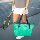 Water resistant nylon tote. Padded sleeve holds 2 paddles/rackets or laptop.